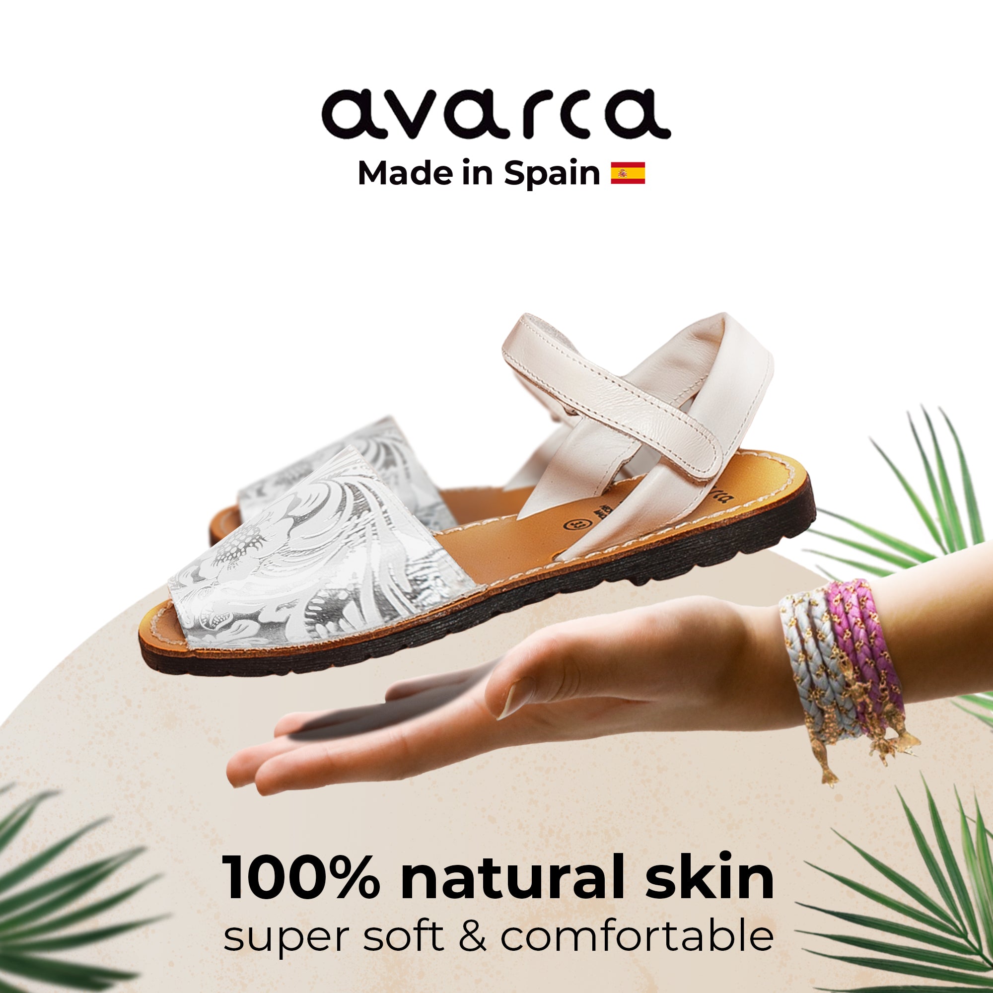 Avarca Leather Toddler Girl White Silver Sandals
