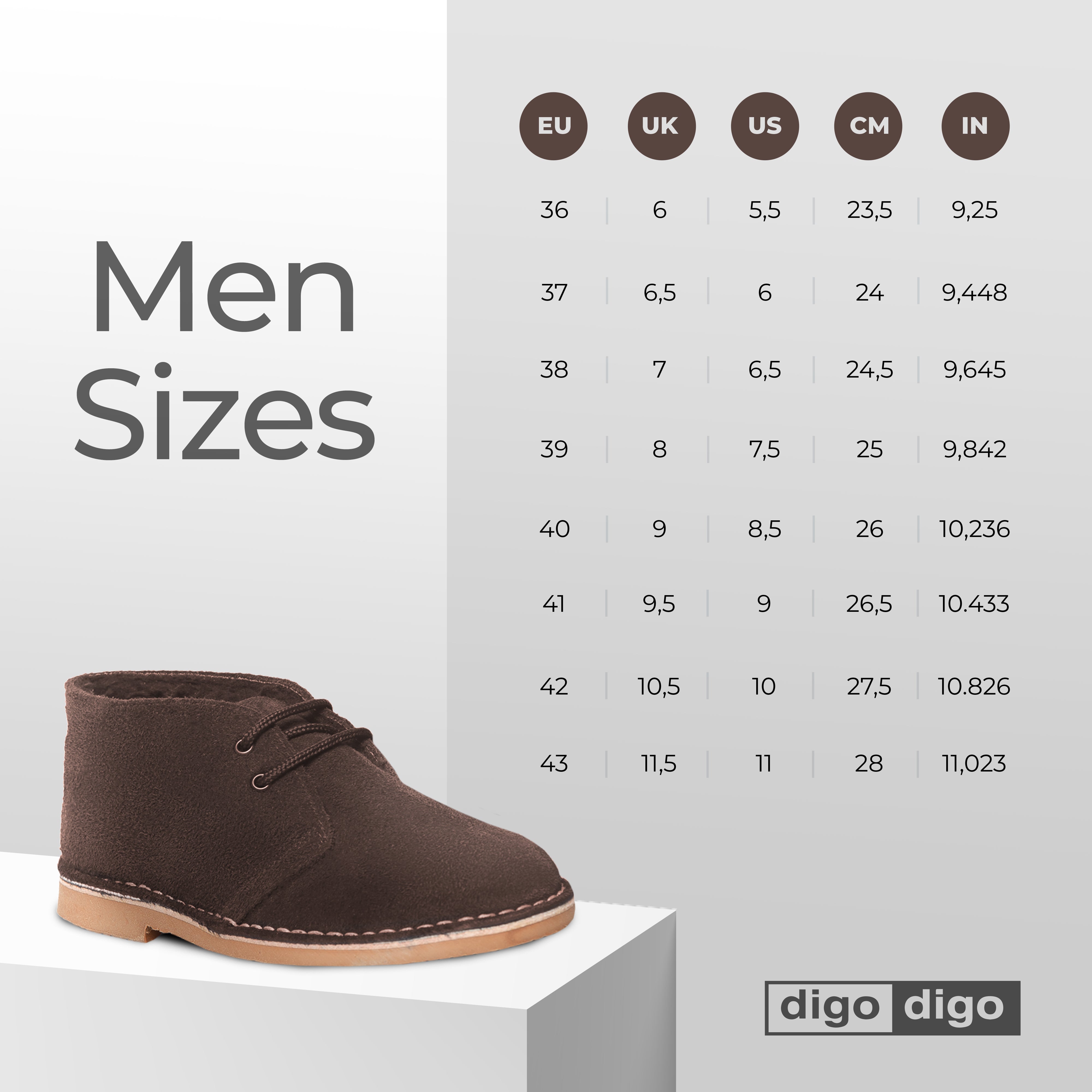 Digo Digo Hiking Chukka Brown Boots for Men Share WhatsApp Deel X Pin it Messenger Email Digo Digo Hiking Chukka Brown Boots for Men Share WhatsApp Deel X Pin it Messenger Email Product form โฌ135.00 Limited time deal Ends in -26% โฌ9995 List Price: โฌ135.00 Size Chart ร Size Chart Men Women Children Foot Length (cm) Foot Length (inches) EU Size US Size UK Size MX Size 26.5 10.43 42 9 8.5 26.5 27 10.63 43 9.5 9 27 27.5 10.83 44 10 9.5 27.5 28.5 11.22 45 10.5 10 28.5 29 11.42 46 11 10.5 29 Foot Length (cm) Foot Length (inches) EU Size US Size UK Size MX Size 22 8.66 35 6 3.5 22 23 9.05 36 7 4.5 23 23.5 9.25 37 7.5 5 23.5 24 9.44 38 8.5 6 24 24.5 9.64 39 9.5 7 24.5 25 9.84 40 10 7.5 25 25.5 10.03 41 10.5 8 25.5 Toddler Little Kids Foot Length (cm) Foot Length (inches) EU Size US Size UK Size MX Size 13.5 5.31 21 5.5 5 13.5 14 5.51 22 6 5.5 14 14.5 5.71 23 6.5 6 14.5 15.5 6.10 24 7.5 7 15.5 16 6.30 25 8 7.5 16 16.5 6.50 26 8.5 8 16.5 17.5 6.89 27 9.5 9 17.5 Foot Length (cm) Foot Length (inches) EU Size US Size UK Size MX Size 18 7.09 28 10 9.5 18 18.5 7.28 29 10.5 10 18.5 19 7.48 30 11.5 11 19 19.5 7.68 31 12 11.5 19.5 20 7.87 32 13 12.5 20 21 8.27 33 1 13 21 21.5 8.46 34 2 1 21.5 39 / Hiking Chukka Brown 39 / Hiking Chukka Ginger 39 / Desert Suede Ginger 39 / Desert Suede Brown 39 / Hiking Green 39 / Desert Blue 40 / Hiking Chukka Brown 40 / Hiking Chukka Ginger 40 / Desert Suede Ginger 40 / Desert Suede Brown 40 / Hiking Green 40 / Desert Blue 41 / Hiking Chukka Brown 41 / Hiking Chukka Ginger 41 / Desert Suede Ginger 41 / Desert Suede Brown 41 / Hiking Green 41 / Desert Blue 42 / Hiking Chukka Brown 42 / Hiking Chukka Ginger 42 / Desert Suede Ginger 42 / Desert Suede Brown 42 / Hiking Green 42 / Desert Blue 43 / Hiking Chukka Brown 43 / Hiking Chukka Ginger 43 / Desert Suede Ginger 43 / Desert Suede Brown 43 / Hiking Green 43 / Desert Blue Size 39 40 41 42 43 Color Hiking Chukka Brown Hiking Chukka Ginger Desert Suede Ginger Desert Suede Brown Hiking Green Desert Blue Free pickup in our shop(s) Add to cart This item is a recurring or deferred purchase. By continuing, I agree to the cancellation policy and authorize you to charge my payment method at the prices, frequency and dates listed on this page until my order is fulfilled or I cancel, if permitted. Guaranteed secure & safe checkout.